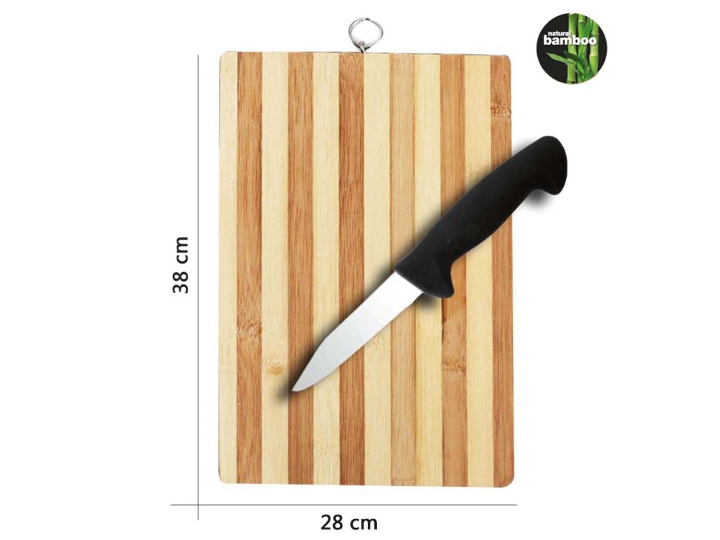 Bamboo BD38 Bambusová doska na krájanie, 38 x 28 cm je vyrobená z bambusového dreva a vďaka tomu je vysoko odolná voči vlhkosti. Obojstranné použitie a dva šikovné rozmery presne pre vašu pracovnú dosku. Bambusová doska z prírodného materiálu, ktorá s nežnosťou pristupuje k ostriu nožov a netupí ich.