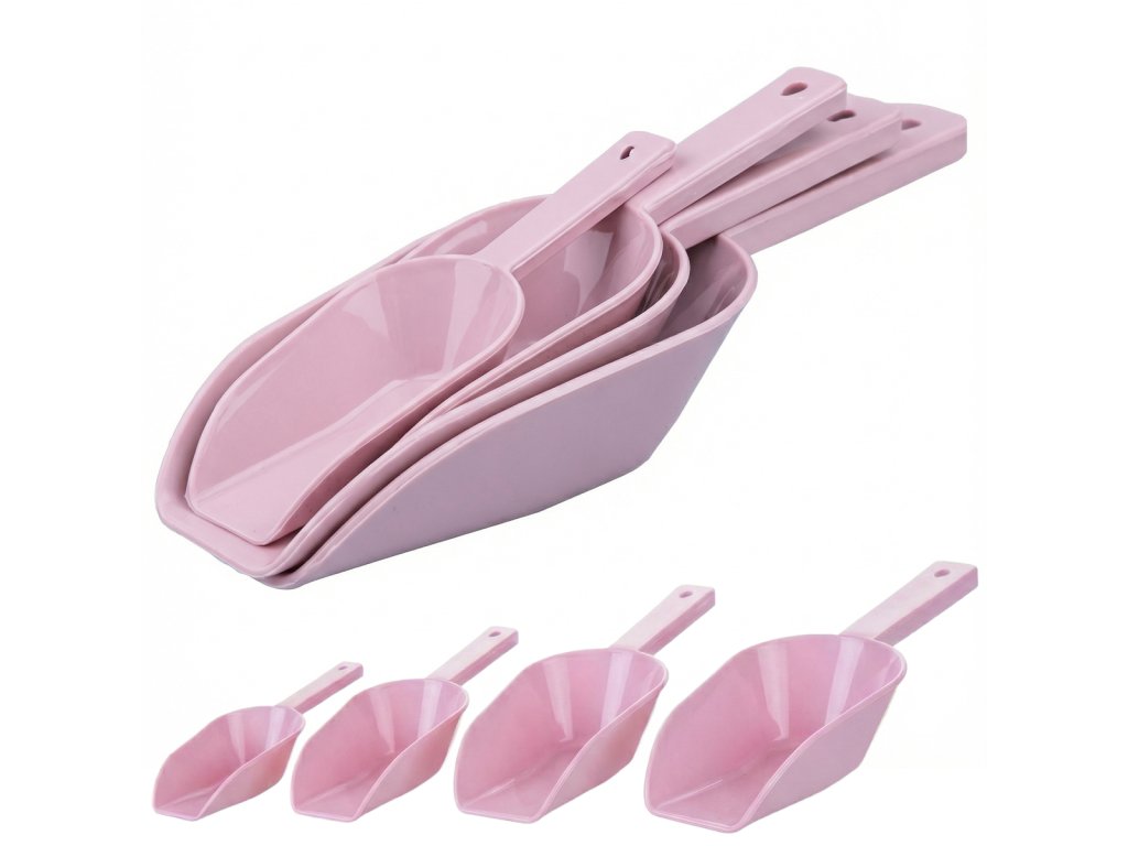 Praktická sada 4 kuchynských lopatiek BANQUET – ideálna na múku, cukor, ryžu či cestoviny. Šikovný otvor na zavesenie šetrí miesto a uľahčuje prácu v kuchyni. Jednoduché čistenie a vždy po ruke!