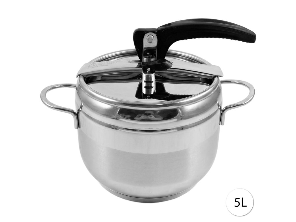 Tento praktický tlakový hrniec od značky BERLiN s objemom 5L je kompaktný model s moderným vzhľadom a overenou konštrukciou. Vyrobený z vysoko kvalitnej nerezovej ocele, ktorá je odolná, dobre vyzerá a ľahko sa čistí. Balenie obsahuje 1 tlakový hrniec a 1 pokrievku. Vhodný na všetky typy sporákov – plynové, elektrické, sklokeramické aj indukčné. Vďaka vyššiemu tlaku dosahuje teplotu 120-140 °C, čo skracuje čas varenia oproti bežným hrncom (napr. hovädzie mäso za 60 minút namiesto 2-3 hodín). Je ideálny na varenie aj dusenie zeleniny, mäsa či strukovín.