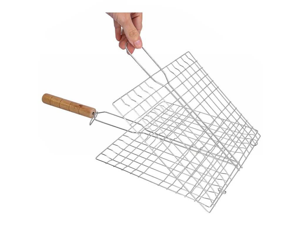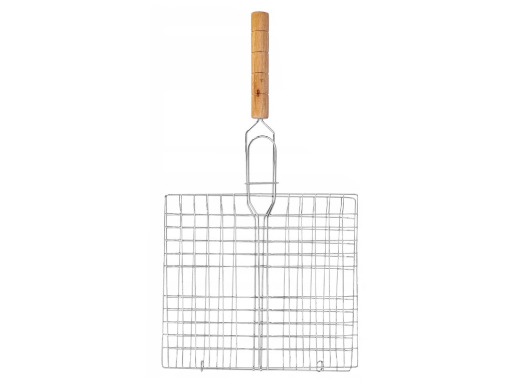 Tento grilovací rošt 21x23 cm je vyrobený z kvalitnej pochrómovanej ocele, čo mu dodáva odolnosť a lesk. Má štvorcový tvar s rozmermi 21x23 cm a je vybavený rukoväťou, ktorej časť je z dreva pre pohodlný a bezpečný úchop. Do roštu sa dá jedlo vložiť, čo umožňuje jednoduché otočenie a rovnomerné grilovanie oboch strán bez zbytočného premiestňovania.