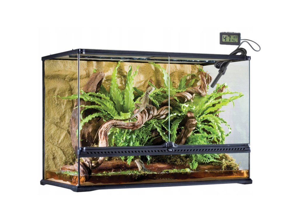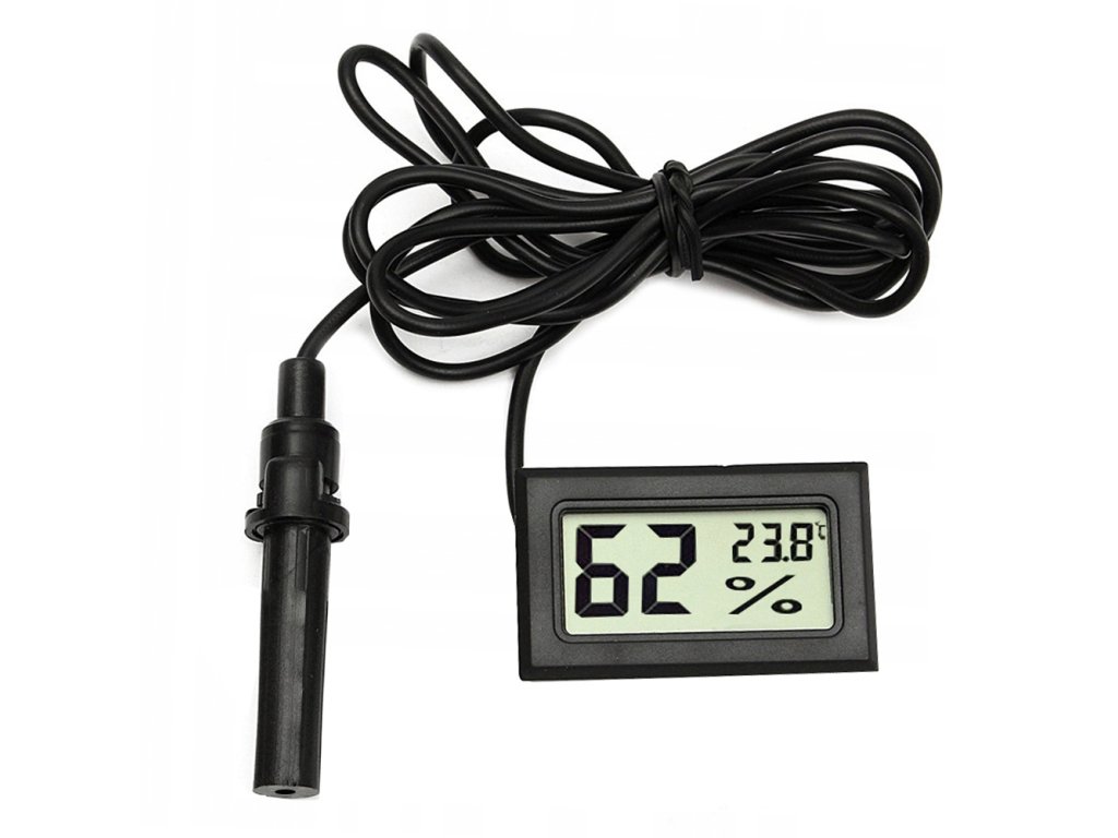 Elektronický teráriový teplomer a vlhkomer HomePRO HP-0800 s veľkým LCD displejom a sondou na dlhom kábli. Zariadenie sa vyznačuje dobrým rozlíšením merania a rýchlou reakciou. Stačí ich položiť na otvorenú ruku a takmer okamžite uvidíte reakciu nástroja. Sonda (senzor) môže byť umiestnená kdekoľvek - v akváriu, teráriu, chladničke, mrazničke, skleníku, atď., všade tam, kde je dostatočný rozsah merania teploty od -50 ° C do 70 ° C.