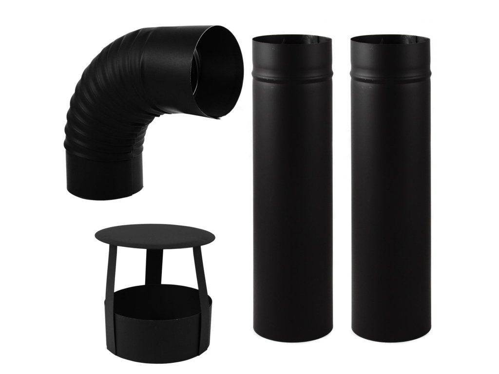 - Dymovod – 1x koleno, 2x rovný diel, 1x strieška, základná ohňovzdorná povrchová úprava, hrúbka 1mm