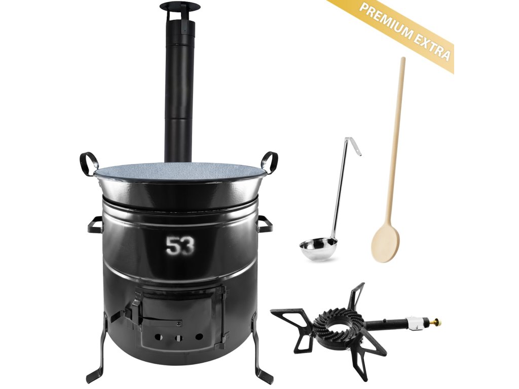 | Obsah sady: | kotlina, dymovod, kotlík, varecha, naberačka, plynový horák |