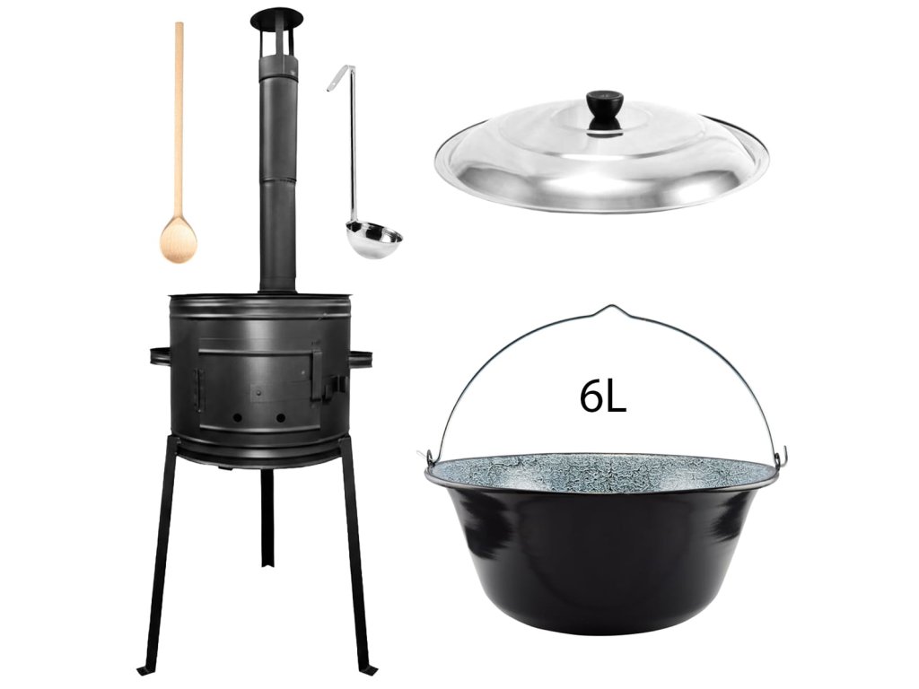 | Obsah sady: | kotlina, dymovod, kotlík, pokrievka, varecha, naberačka |