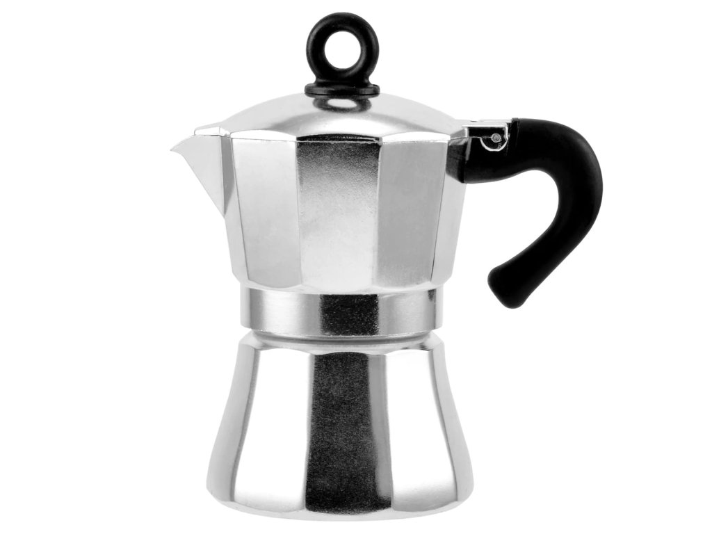 - Ľahký a odolný moka kávovar hliníkový s ergonomickou plastovou rukoväťou.