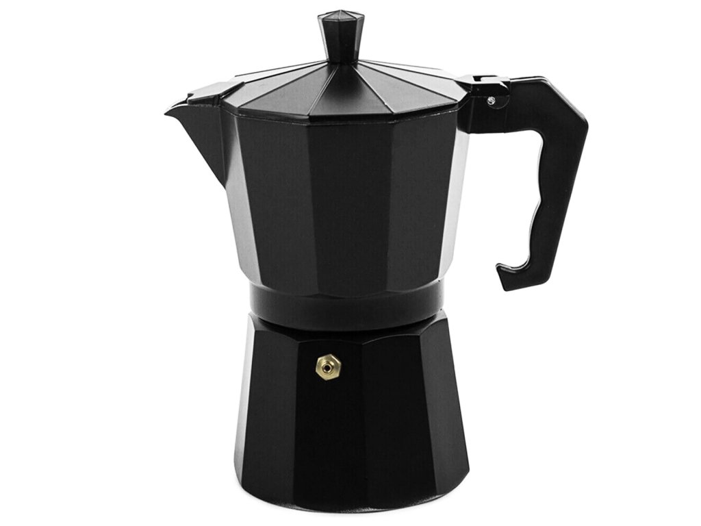 - Ergonomická plastová rukoväť: bezpečný a pohodlný úchop – moka kávovar s rukoväťou.