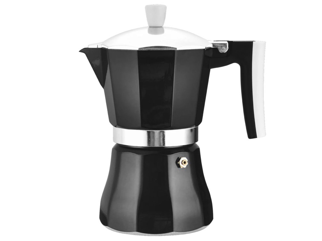 Indukčný moka kávovar 3 šálky Perfect Home Azzurro 16662 v čiernej farbe. Hliníková kanvica s plastovou rukoväťou pripraví 150 ml aromatickej kávy na indukcii, plyne, elektrike aj keramike. Ľahká údržba.