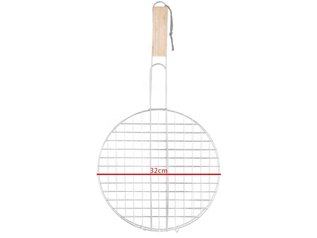 Grilovací rošt 32 cm z nehrdzavejúcej ocele je ideálnym pomocníkom pre domáce grilovanie. Okrúhly tvar s rúčkou z dreva umožňuje jednoduché otočenie jedla pre rovnomerné grilovanie oboch strán. Nerezový grilovací rošt okrúhly 32 cm je odolný, stabilný a univerzálny na gril.