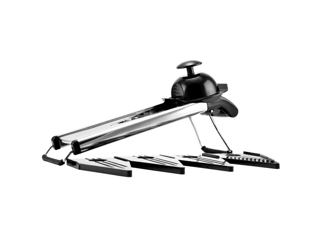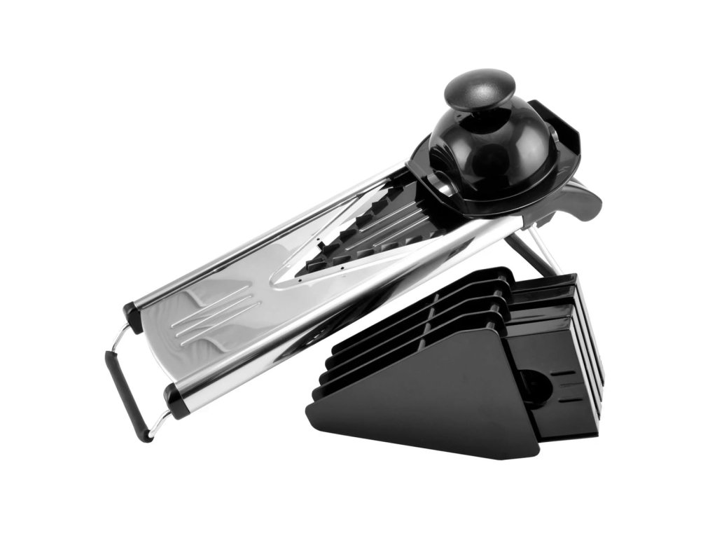 Perfect Home 28302 je multifunkčný V-krájač 5v1 v čiernej farbe. Tenké i hrubé plátky a julienne, chránič prstov, nadstavce 1,5/2,5/3,5 mm a 3/7 mm. Jednoduchá údržba, stabilná konštrukcia. Bezpečné používanie.