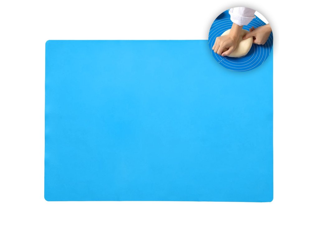 je nevyhnutným doplnkom pre každého milovníka pečenia. S rozmermi 64x45 cm, vyrobená z kvalitného silikónu v atraktívnej modrej farbe, ponúka ideálny povrch na vaľkanie cesta bez lepenia. Podložka na pečenie je odolná voči teplotám a ľahko sa čistí, čo z nej robí najlepšiu silikónovú podložku na cesto.