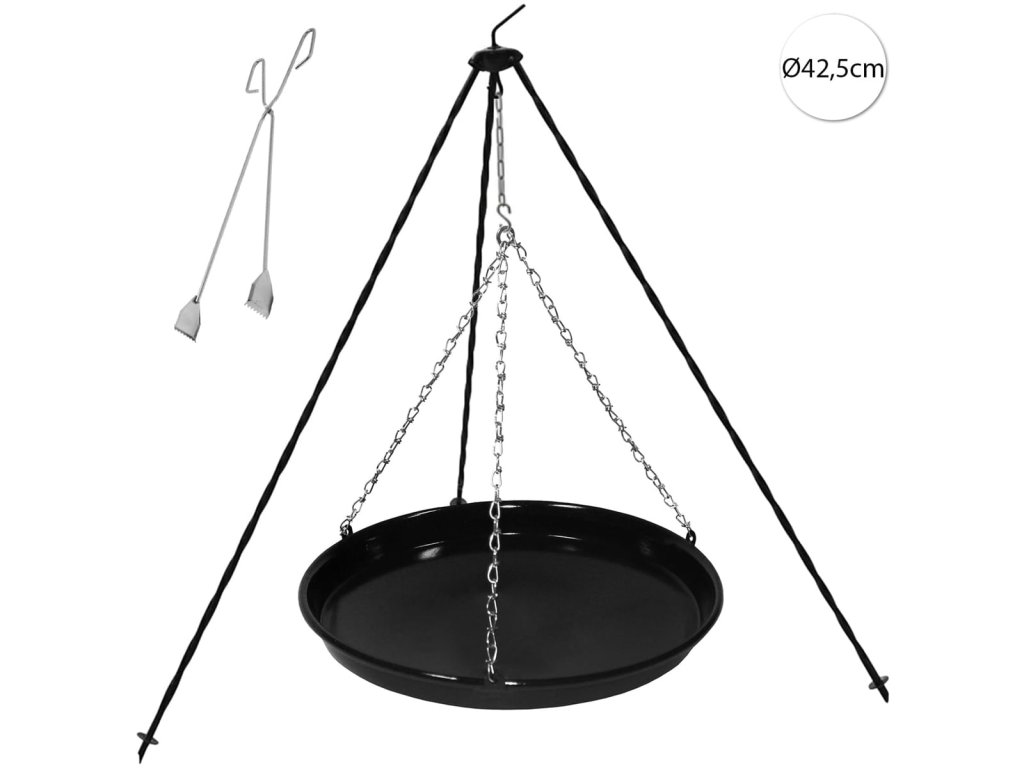 | Obsah sady: | trojnožka, grilovacie kliešte, grilovacia panvica |