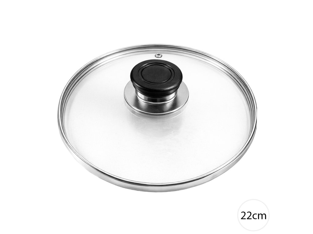 Sklenená pokrievka 22cm od Perfect Home s otvorom na paru, nerezovým okrajom a plastovou rukoväťou. Pasuje na hrnce aj panvice s priemerom 22cm. Odolná voči vysokým teplotám.