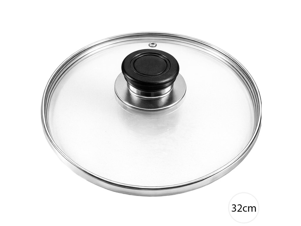 Sklenená pokrievka 32cm od Perfect Home s otvorom na paru, nerezovým okrajom a plastovou rukoväťou. Pasuje na hrnce aj panvice s priemerom 32cm. Odolná voči vysokým teplotám.