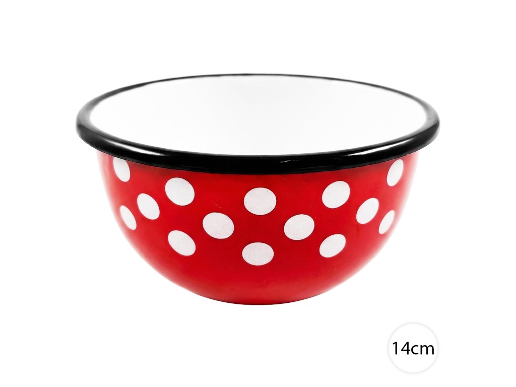 Smaltovaná miska BODKY 14 cm – retro dizajn, moderná praktickosť