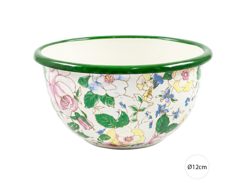 Smaltovaná miska KVETY 12 cm je dokonalým spojením tradičného dizajnu a modernej praktickosti. Táto smaltovaná miska s kvietkami, bielym vnútrom a zeleným lemom prináša do vašej kuchyne nádych retro štýlu. Či už ju používate doma, na chate alebo v reštaurácii, jej elegantný kvietkovaný vzhľad očarí každého. Smalt ako materiál spája pevnosť kovu s hygienickosťou hladkého skleneného povrchu, čo robí misku ideálnou na prípravu, servírovanie a skladovanie jedál. Nezmení chuť ani vôňu potravín, je odolná proti poškriabaniu, pripáleniu a výborne vedie teplo.