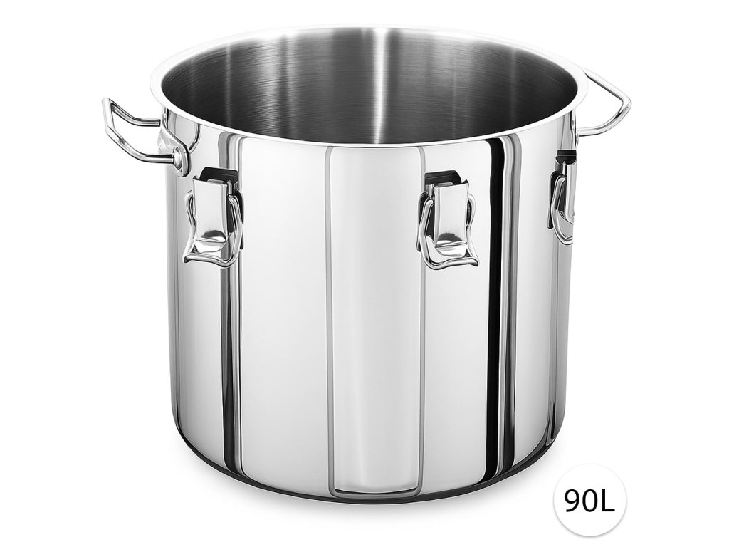 Tento robustný veľký nerezový hrniec je stvorený pre nepretržitú prevádzku v gastro segmente. Ako nerezový hrniec 90 l zvládne veľké várky polievok, omáčok či gulášu a vďaka pracke bezpečne zaistí kompatibilnú pokrievku pri prenášaní (pokrievka nie je súčasťou balenia).