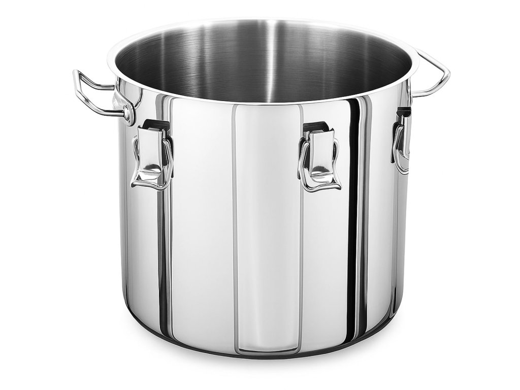 - Univerzálne použitie: veľký kuchynský hrniec, vhodný aj ako veľký nerezový kastról do profesionálnych kuchýň.
