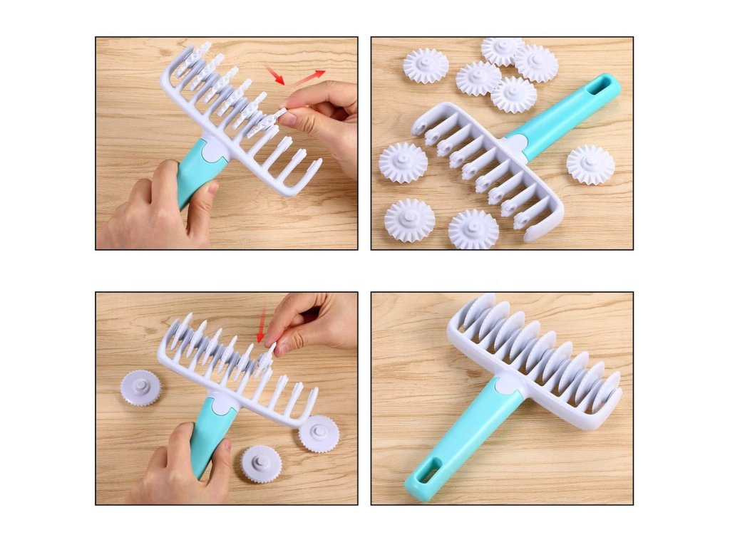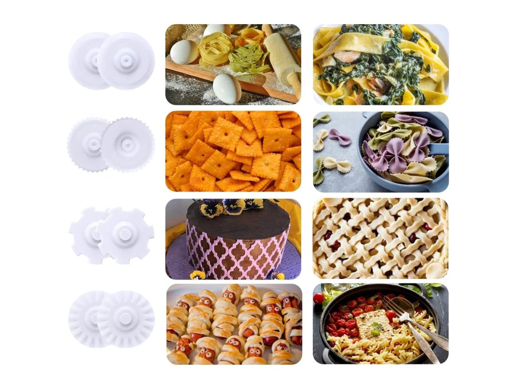 - Multifunkčné radlo na cesto s vymeniteľnými nástavcami pre rôzne tvary a rezanie.