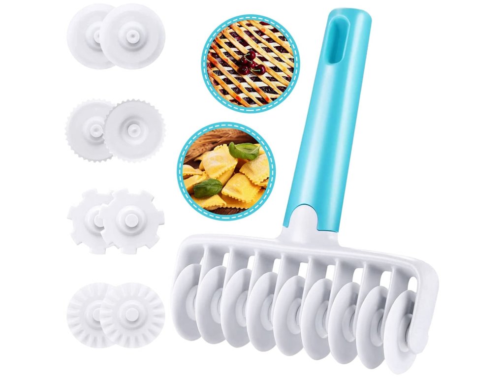 Toto radlo na cesto značky Royal Kitchen prichádza so 4 vymeniteľnými nástavcami, čo umožňuje rôzne spôsoby rezania a tvarovania cesta. Priemer kolieska je 3,6 cm, šírka medzi kolieskami je 1 cm, materiál je odolný plast, a celý nástroj je vhodný do umývačky riadu pre jednoduchú údržbu.