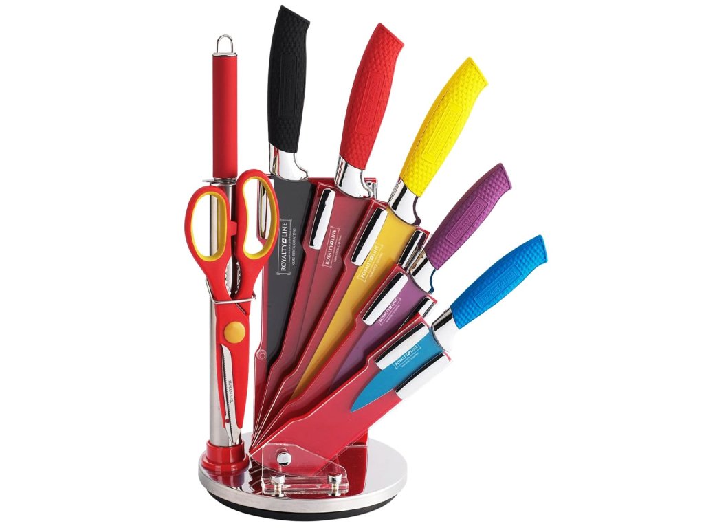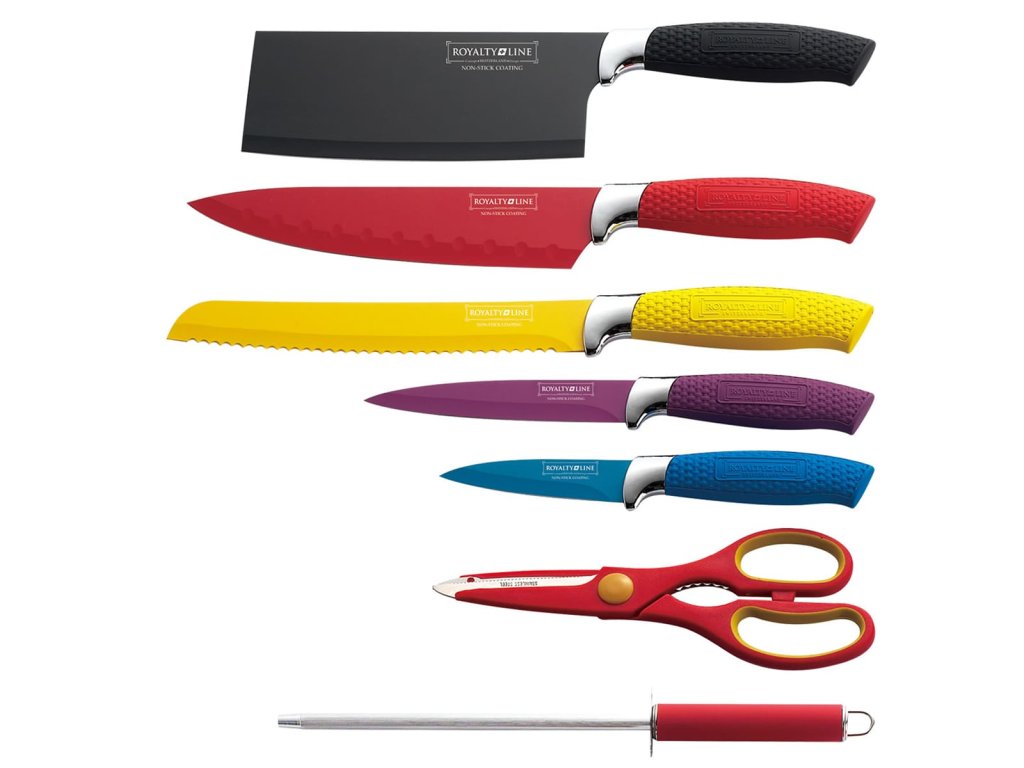 Sada kuchynských nožov 8 ks so stojanom – Royalty Line RL-COL8-W, farebné