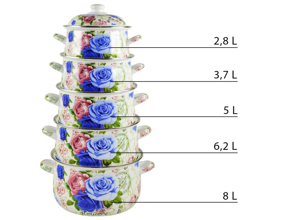 TIDAL Smaltované hrnce ROSES, 2,8/3,7/5/6,2/8L, 10ks, TD-7979