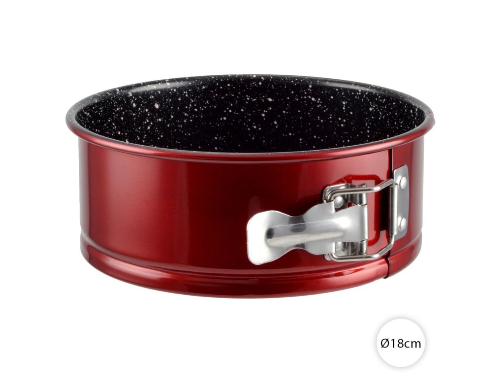 Tortová forma rozkladacia 18 cm – Metal Red – Perfect Home 19119 s nepriľnavým povrchom pre ľahké vyklopenie torty. Vyrobená z odolnej uhlíkovej ocele, vhodná do všetkých typov rúr a umývačky. Praktický odnímateľný okraj slúži aj ako servírovací podnos. Ideálna na sladké aj slané pokrmy.